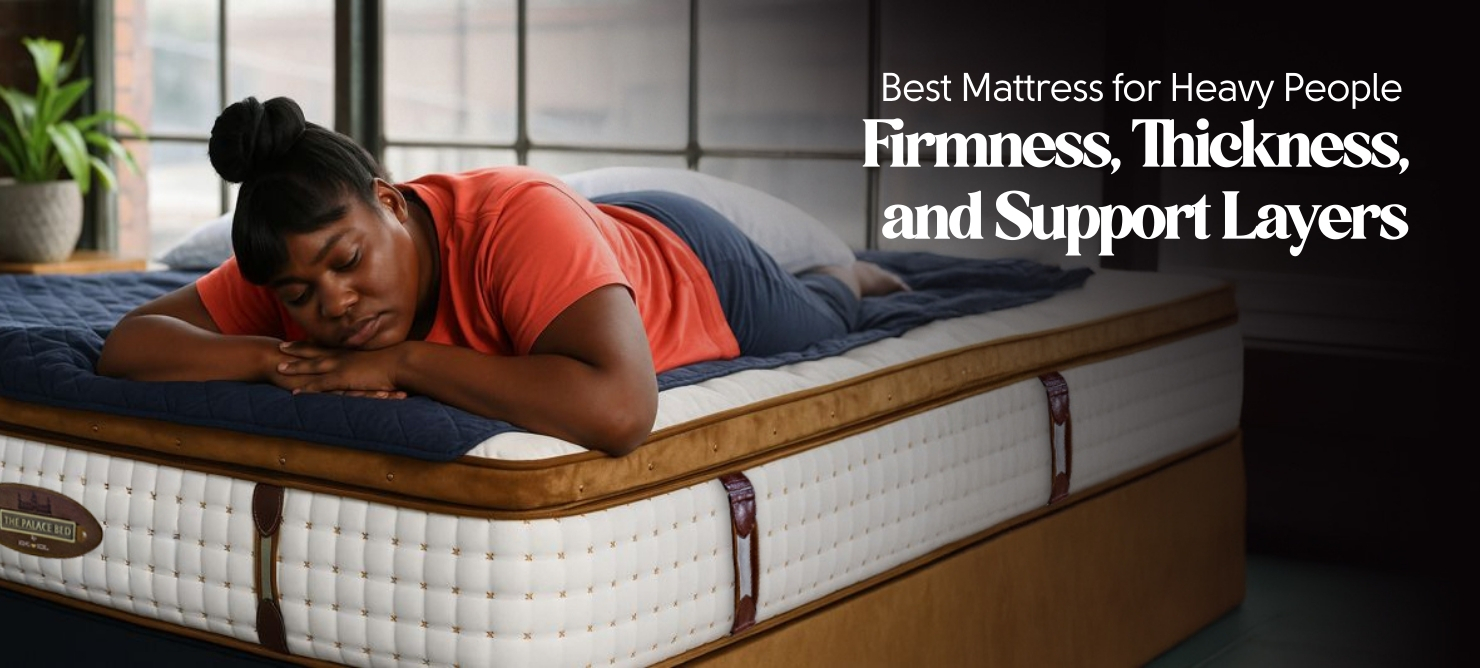 Find the best mattress for heavy people. Expert guide on firmness levels, ideal thickness, support layers, and durability for 100+ kg sleepers.